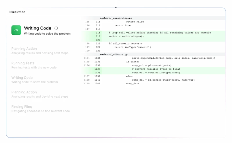 Since then we’ve been chasing the dream of building something that can genuinely automatically perform end to end programming tasks with no intervention and a high degree of reliability - an artificial colleague. Genie is the first step in doing exactly that.