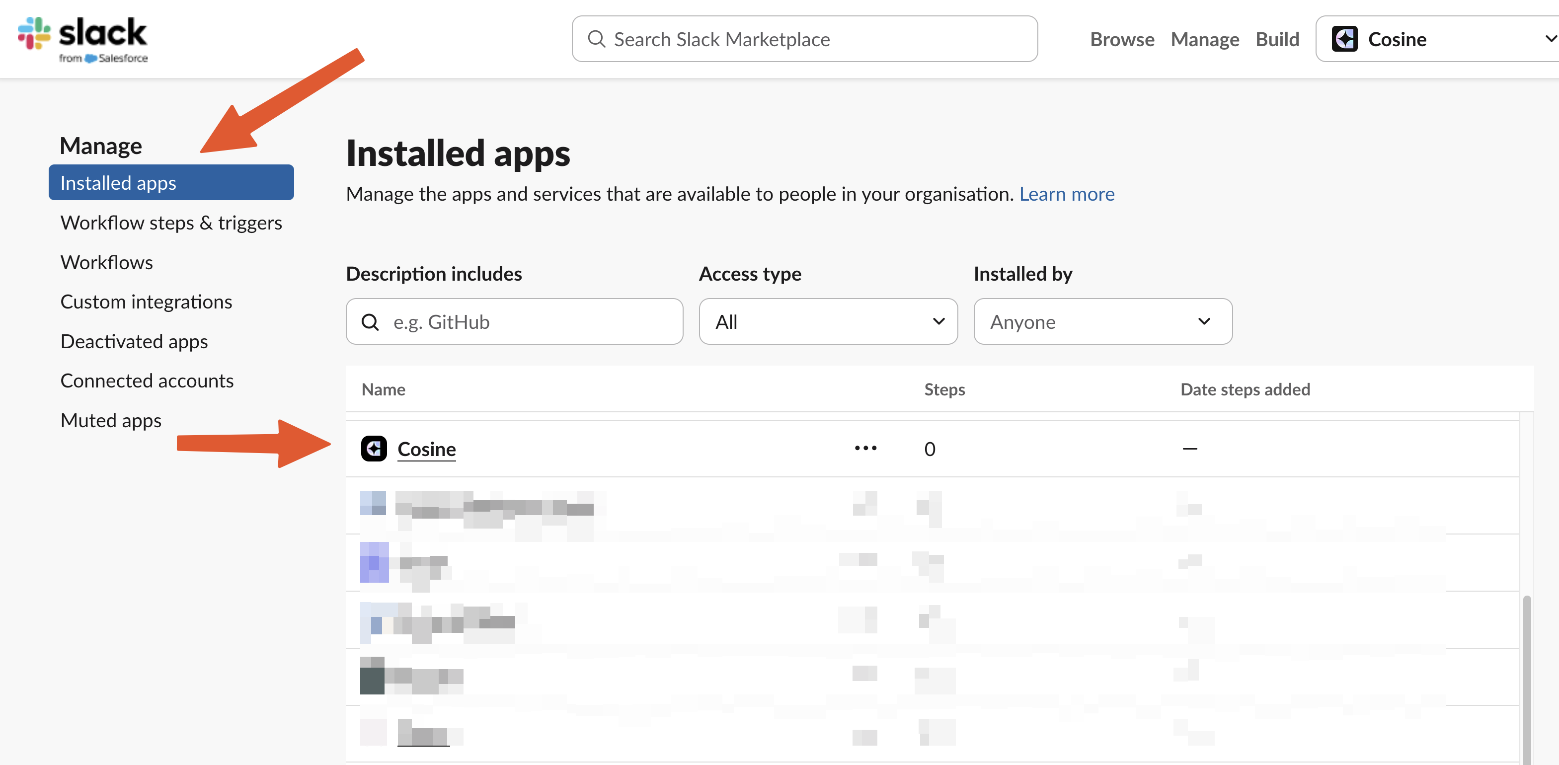- Next, under Installed apps, select the Cosine app