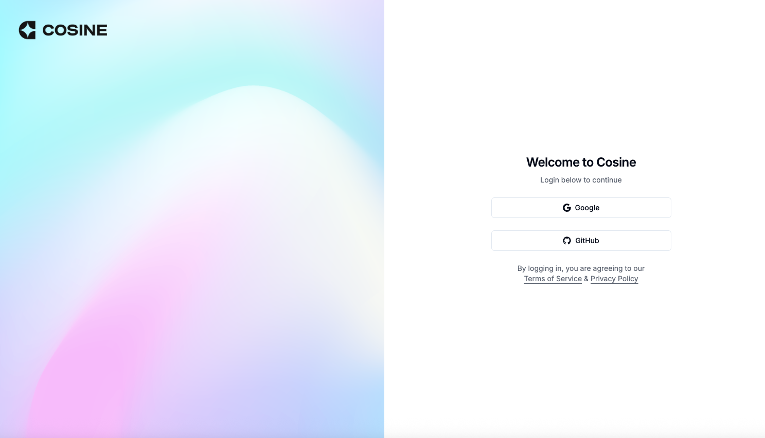 - Open the Cosine platform and sign up with your work email.