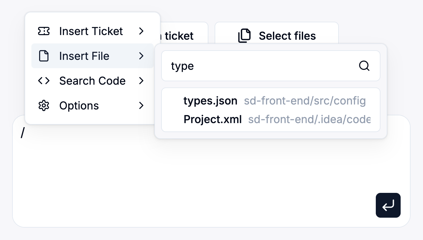 - Insert File: Attach a specific file to your instruction.